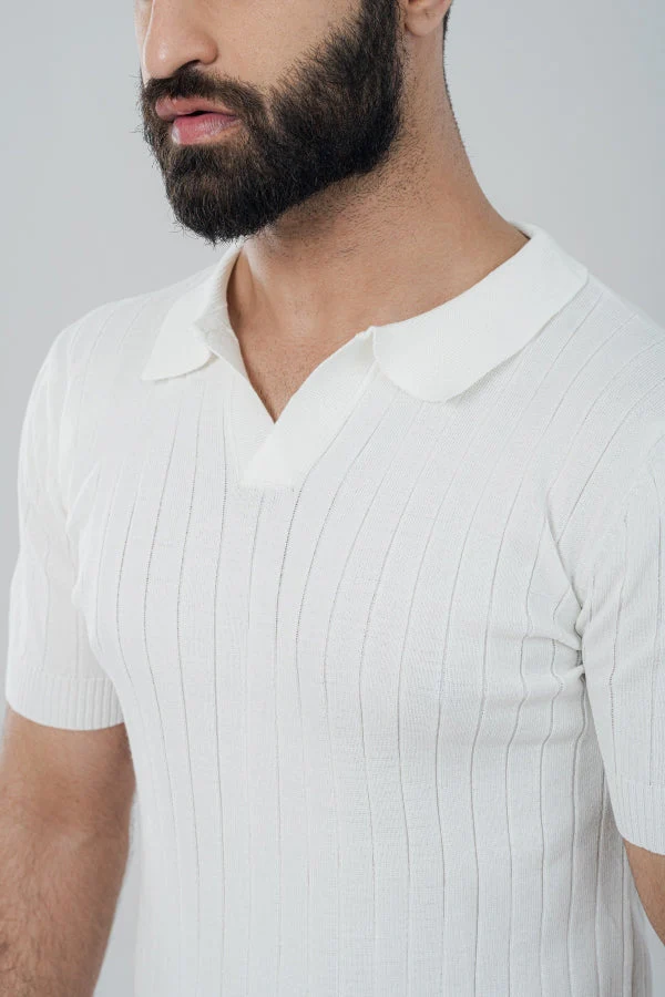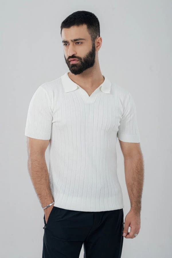 Modish Vneck White Polo Shirt PS-0100