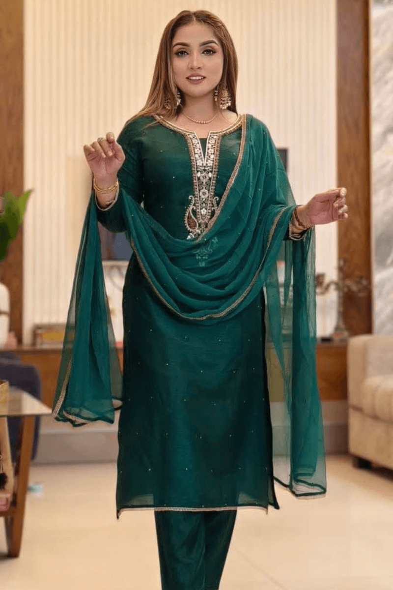 Embroidered Topeto Silk 3-Pcs Av-078