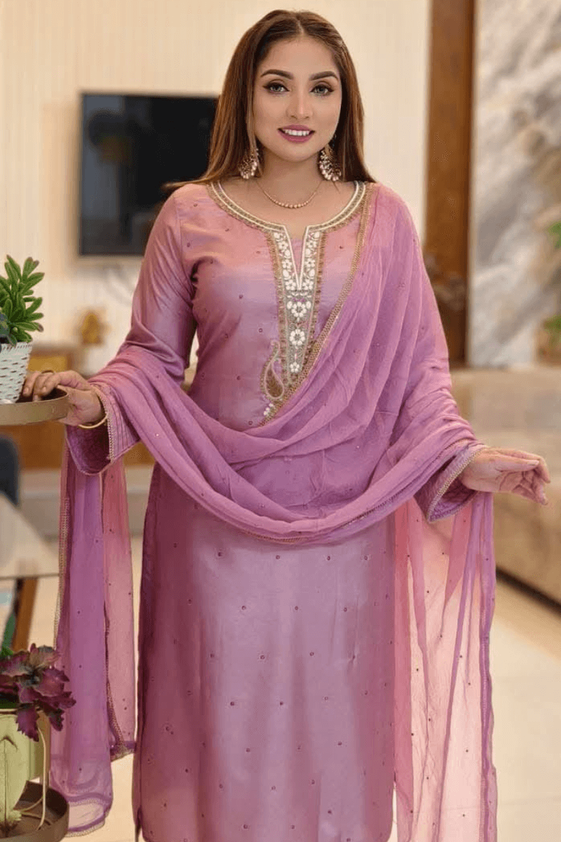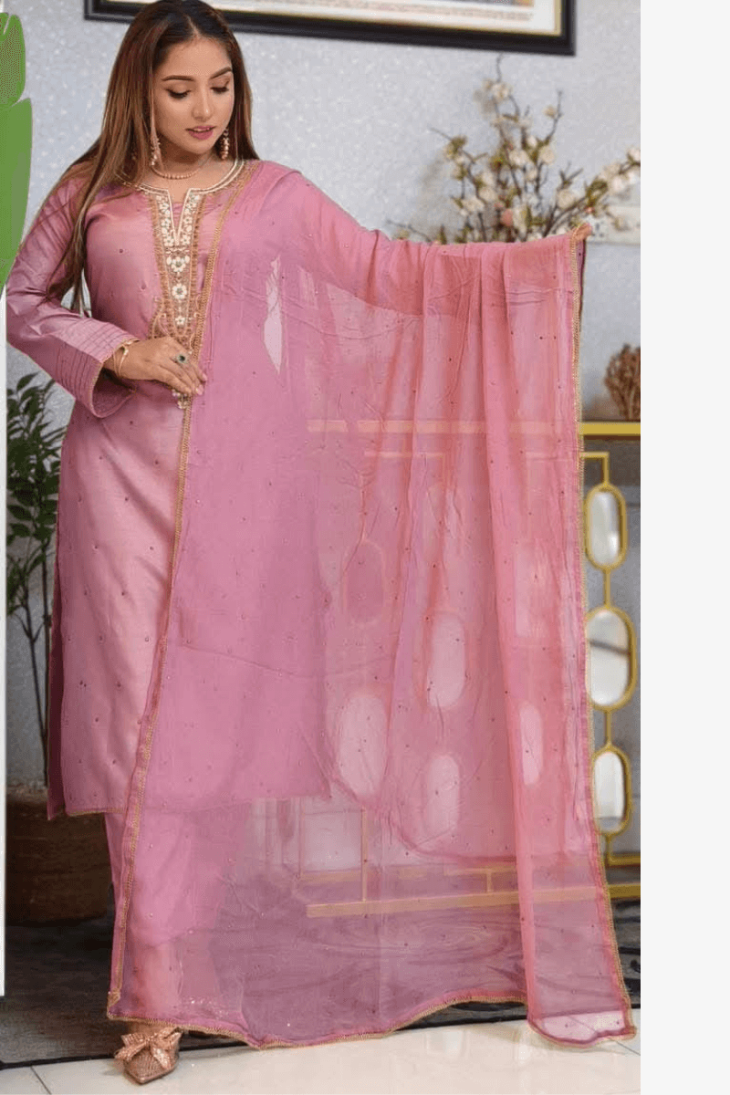 Embroidered Topeto Silk 3-Pcs Av-219