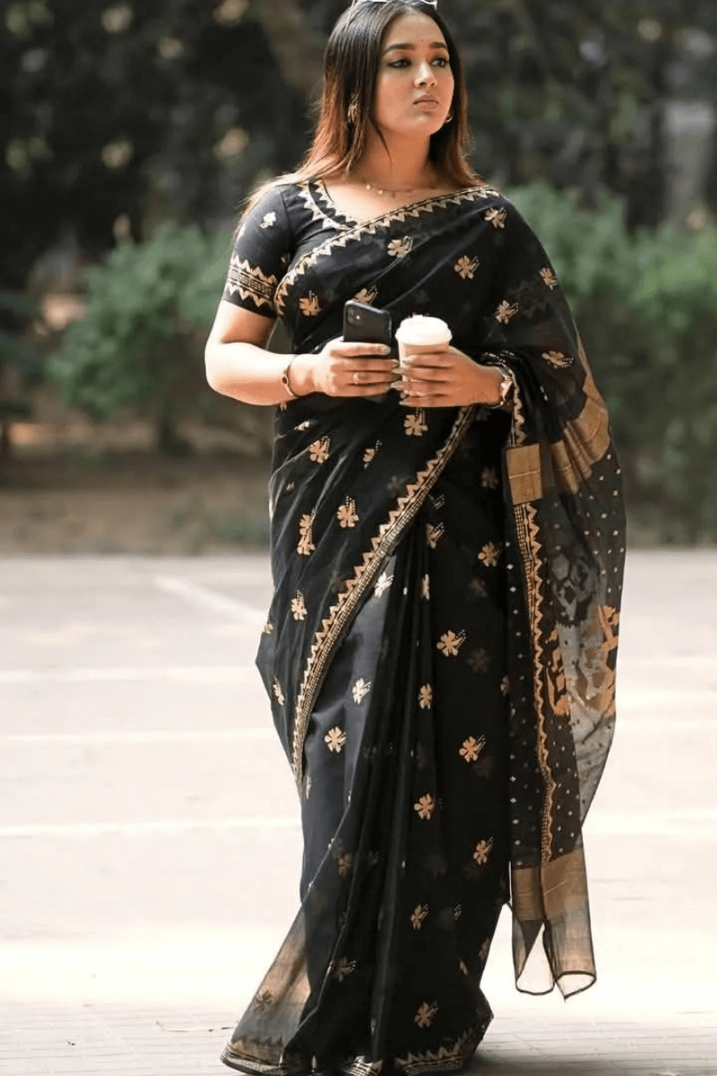 Screen Print Semi Muslin Saree Af-040