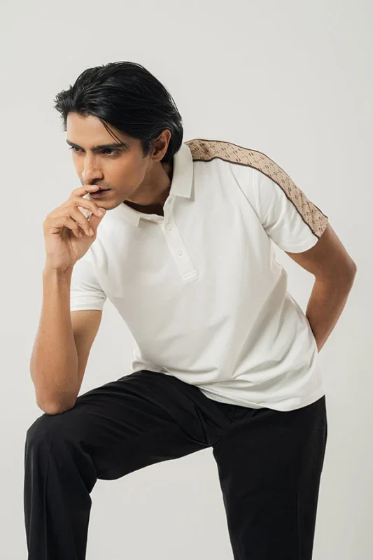 Modish Vneck White Polo Shirt PS-0100