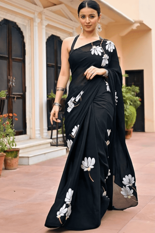Black Semi Muslin Saree